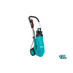 12.0L sprayer trolleyEasy to move with wheels Metal pump lever, high performance pump, brass lance and nozzle large loop handle with comfort grip Pressure: 2.5bar Packed by color box