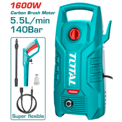 Voltage: 220-240V~50/60HzCarbon brush motor Pure copper wire Input power: 1600W Max Pressure: 140Bar (2030PSI) Flow rate: 5.5L/min Auto stop system Include: 1 Set water spray gun (TGTSG026) 1 Pcs 5m super flexible high pressure hose 1 Pcs water inlet screw Packed by color box