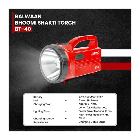 Balwaan BT-50 Shakti Head Torch 2000mAh Battery Powered Flash Light with Head Belt, Charging Cable & User Manual, Durable Design, 6 Month Warranty MTAK-BA-TO-5430