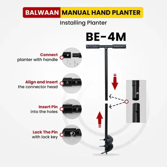 Balwaan BE-6M Manual Tree Planter 6-Inch Hand Auger, Manual Operation, Lightweight & Durable Design for Easy Tree Planting MTAK-MA-HA-5670