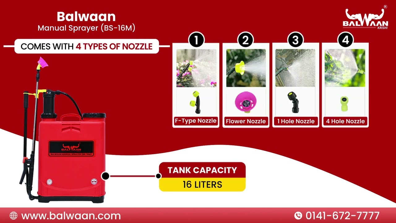 Balwaan BS-16M Manual Sprayer 16L Capacity, 3 Nozzles, Delivery Pipe, Extendable Lance, User Manual Included MTAK-MA-SP-5675