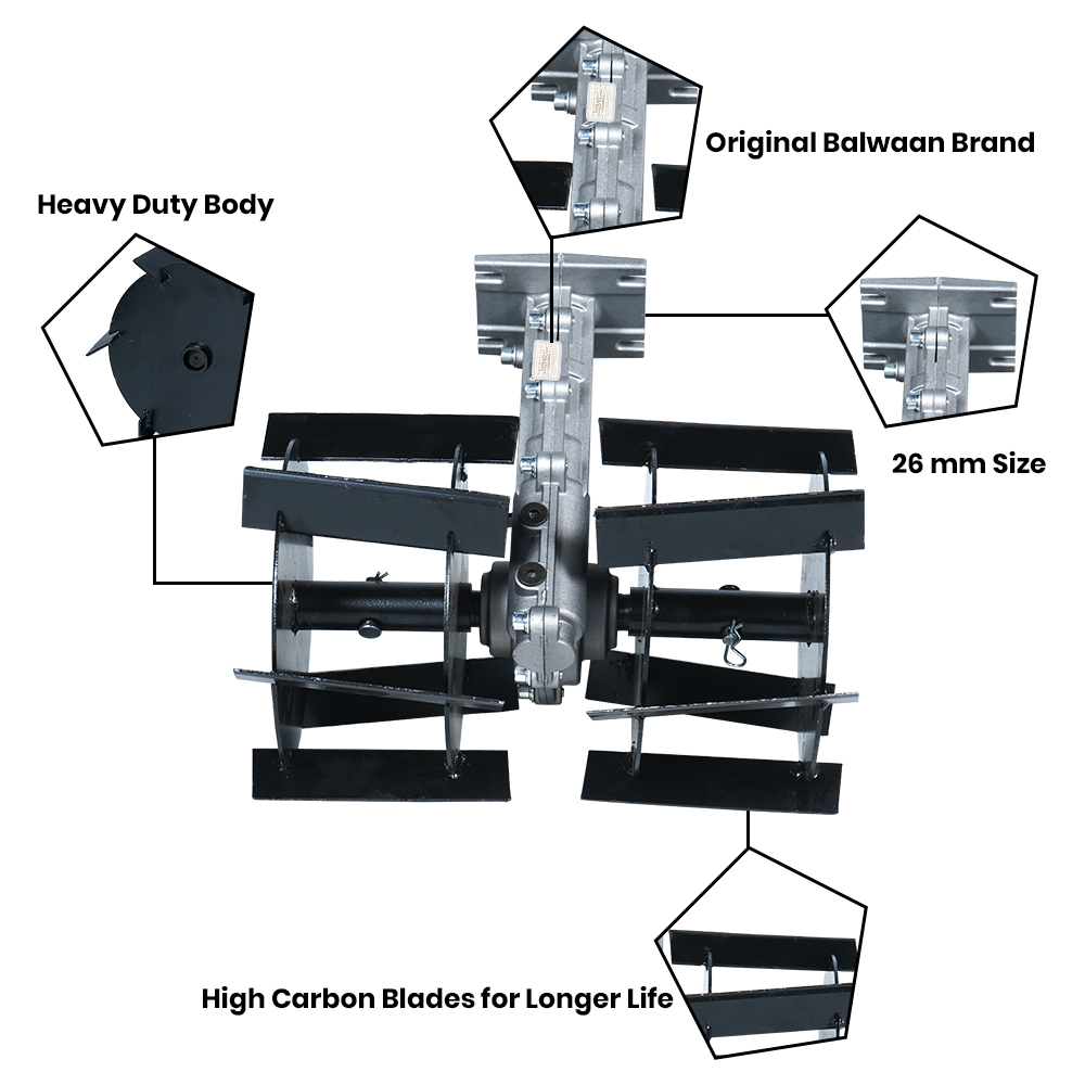 Balwaan BTA-26 Cross Brush Cutter Tiller Attachment Heavy-Duty Power Weeder Accessory with 2-Blade Set & 1 Gear Head, Durable & Easy Fit MTAK-AC-BR-702
