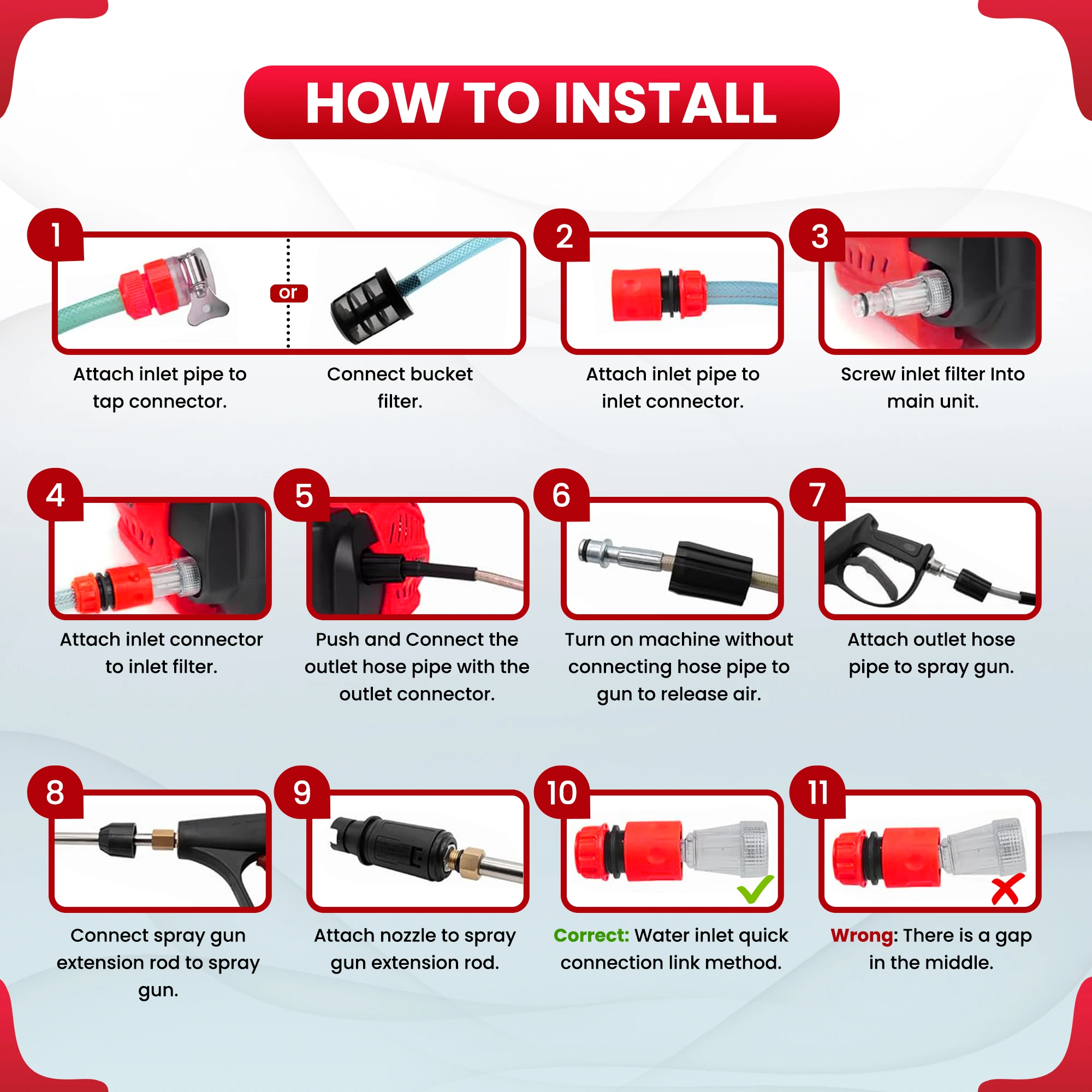 Straight Lance, Foam Bottle, 26 Feet Pipe, 10 feet suction pipe, 4 meter electric wire, Warranty card, User manual