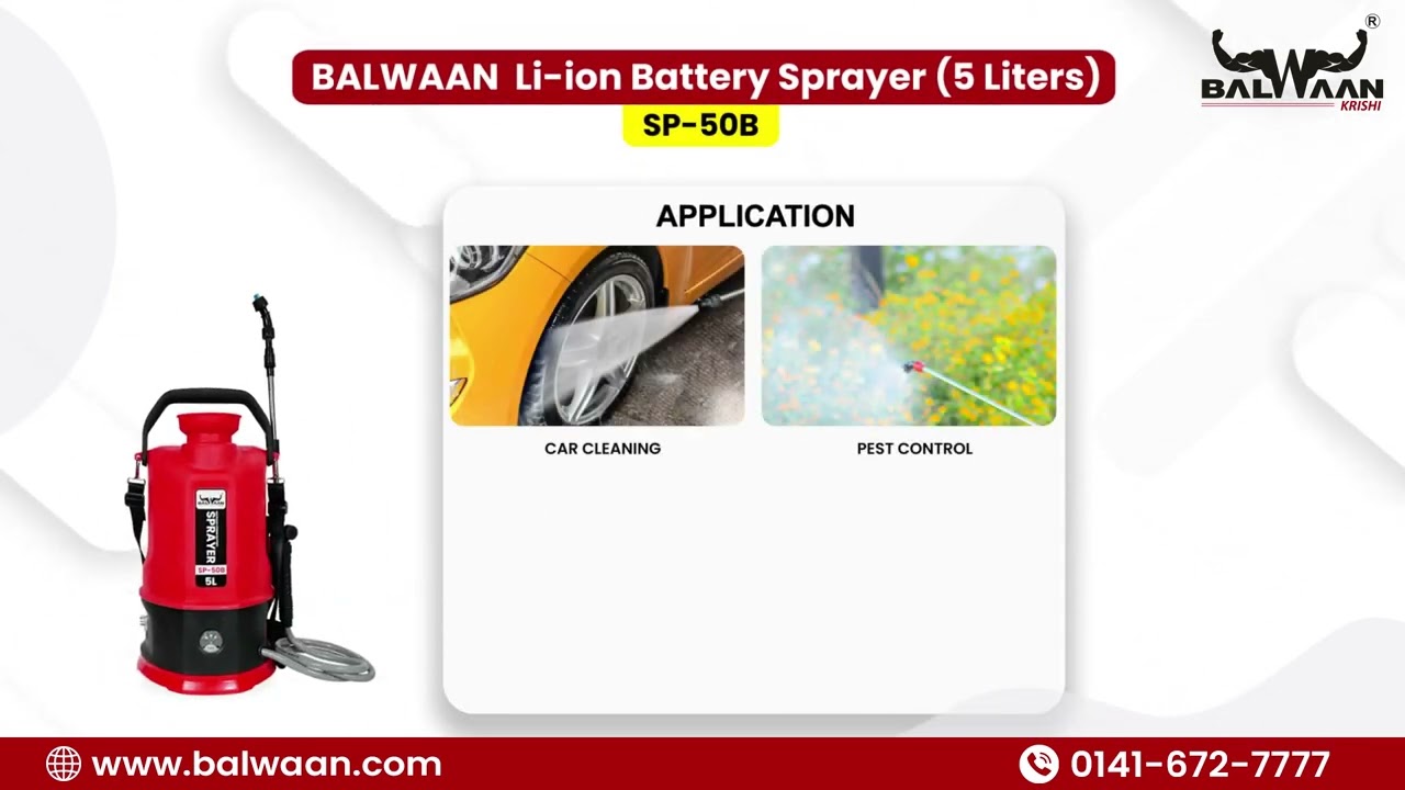 Balwaan SP-50B Li-Ion Battery Sprayer 5L Garden Sprayer, 12V 2.6Ah Lithium Battery, 2 Nozzles, 1+1 Extendable Lance, User Manual Included, 6 Month Warranty MTAK-BA-SP-5593