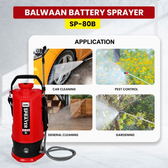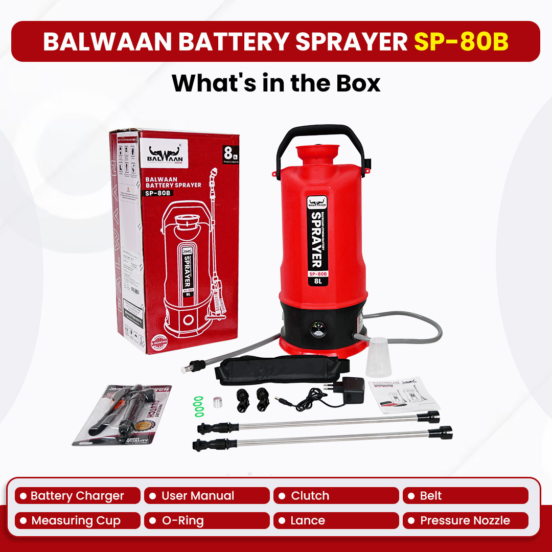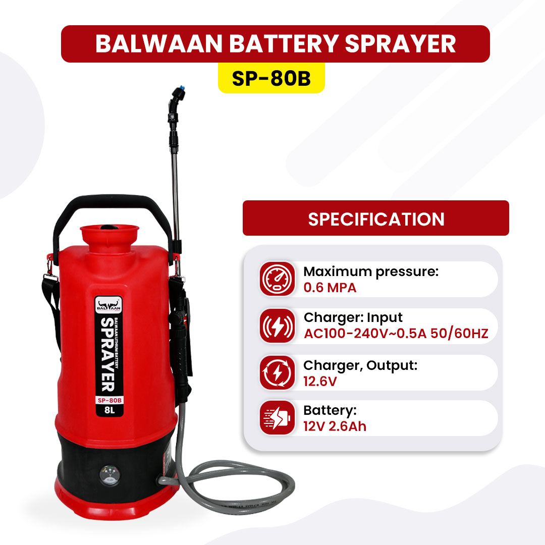 Balwaan SP-80B Li-Ion Battery Sprayer 8L Garden Sprayer, 12V 2.6Ah Lithium Battery, 2 Nozzles, 1+1 Extendable Lance, User Manual Included, 6 Month Warranty MTAK-BA-SP-5594