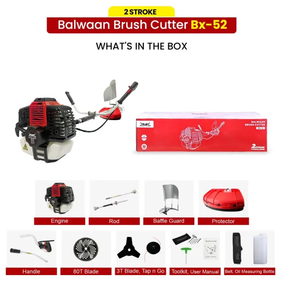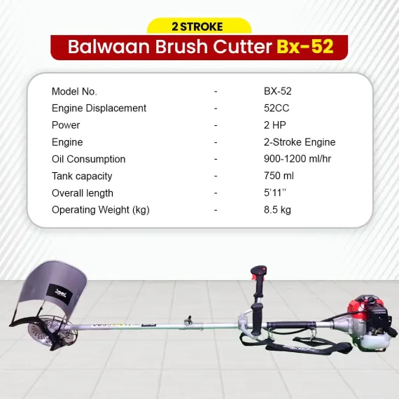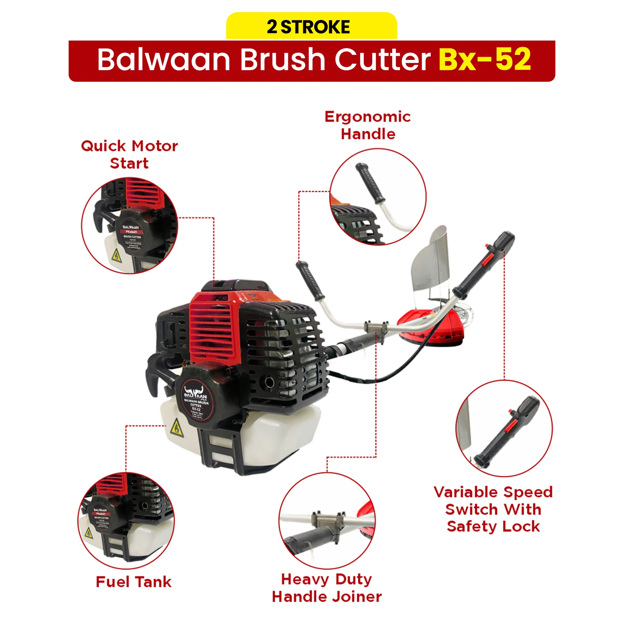 Balwaan BX-52 Side Pack Brush Cutter 52cc Petrol 2-Stroke | Dual Shaft, 3T Blade, Trimmer Head | Tool Kit & Side Belt Included | 6 Month Warranty | SKU: MTAK-EN-BR-2183