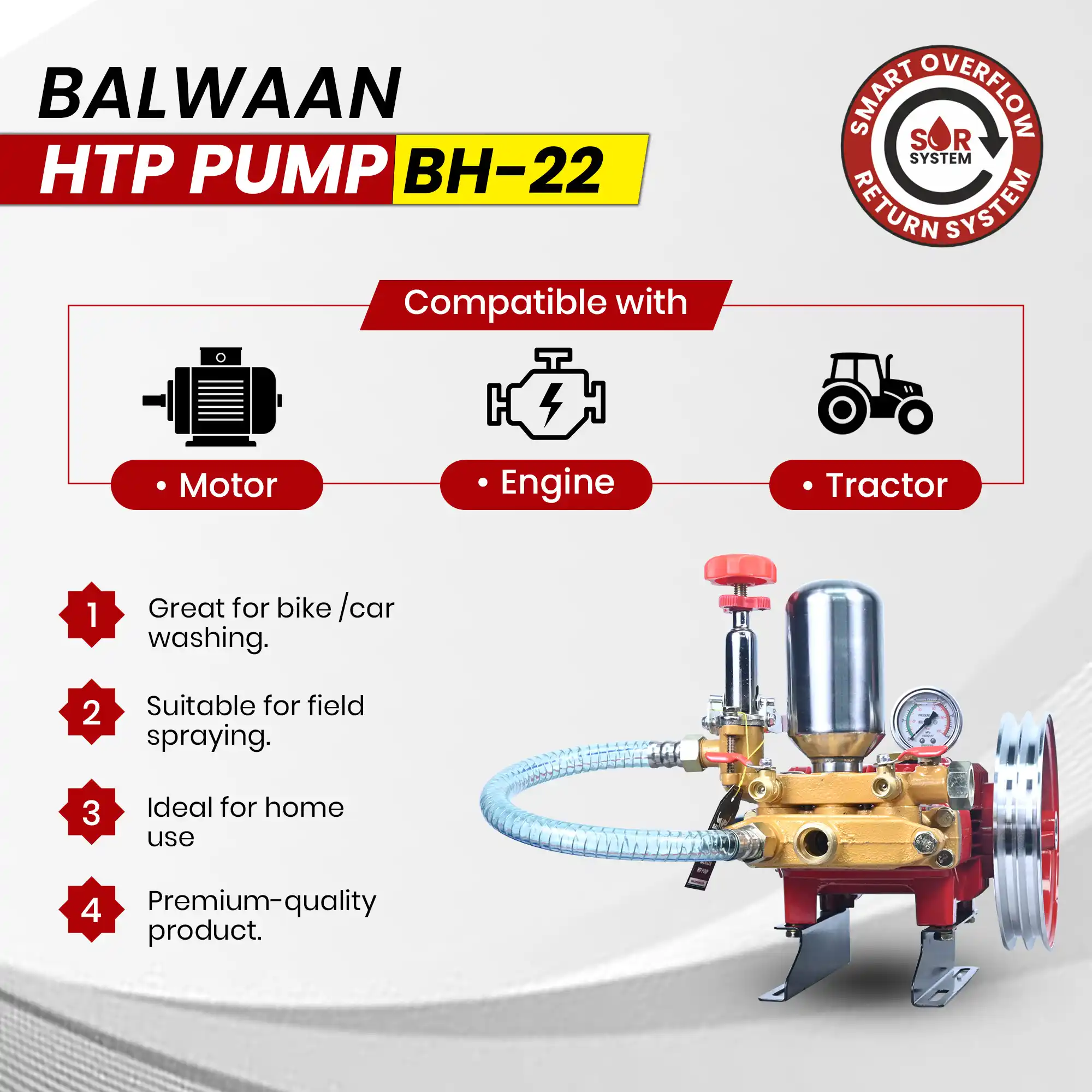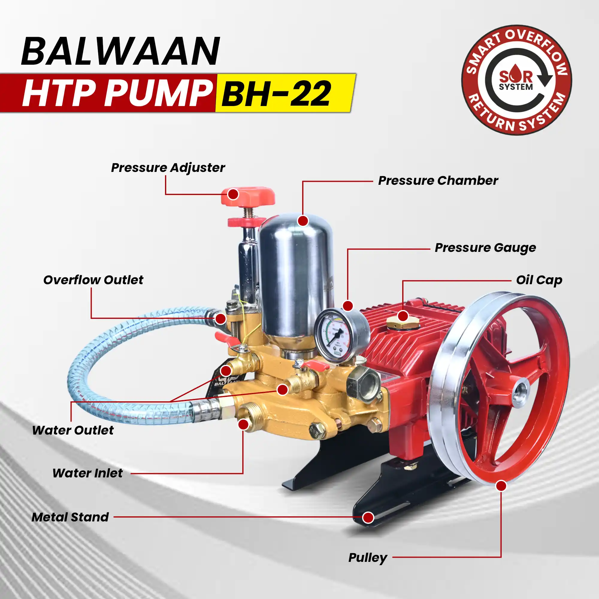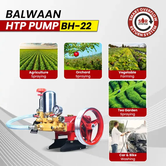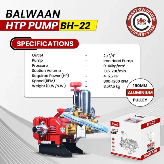 Balwaan BH-22 HTP Pump (2-Mouth 1/4) 190mm Aluminum Pulley, Wire Overflow & Suction Hose, Accessories Bag & User Manual, 12-Month Warranty MTAK-SP-HT-7045