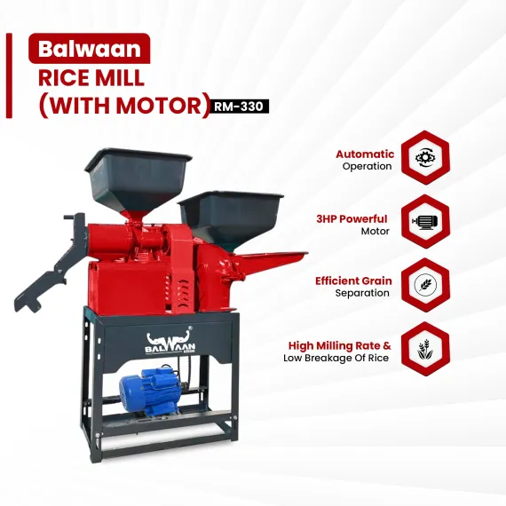 Balwaan RM-330 Rice Mill Combine Motor Operated, 3HP 2800 RPM, Copper Winding, Flow Adjuster, User Manual Included, Durable Design for Efficient Rice Milling, 6 Month Warranty MTAK-EL-PO-6067
