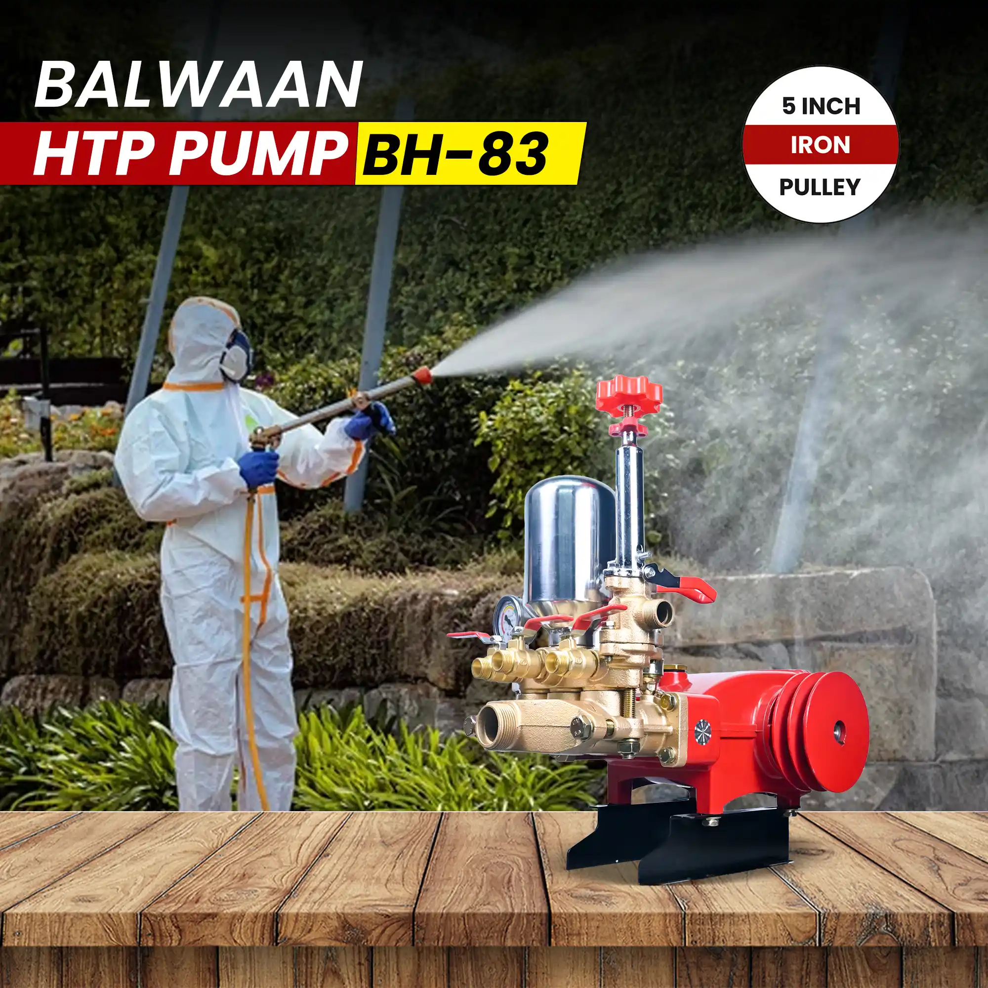 The Balwaan HTP Pump BH-83 is a heavy-duty high-pressure sprayer pump designed for professional agricultural spraying and industrial applications. Built with a strong iron head pump, triple piston technology, and a high-capacity air chamber, it delivers powerful, stable, and consistent spray performance even during long working hours.