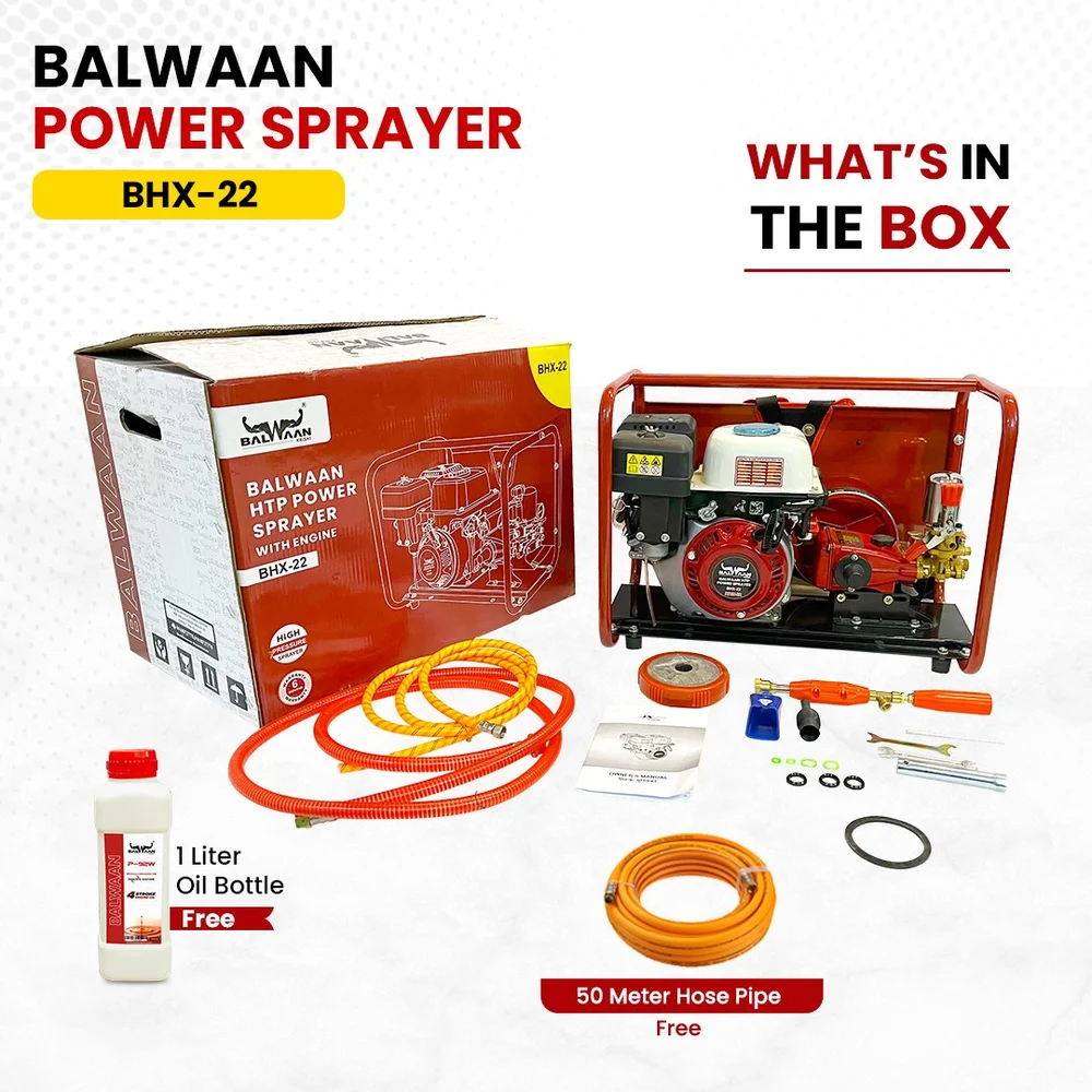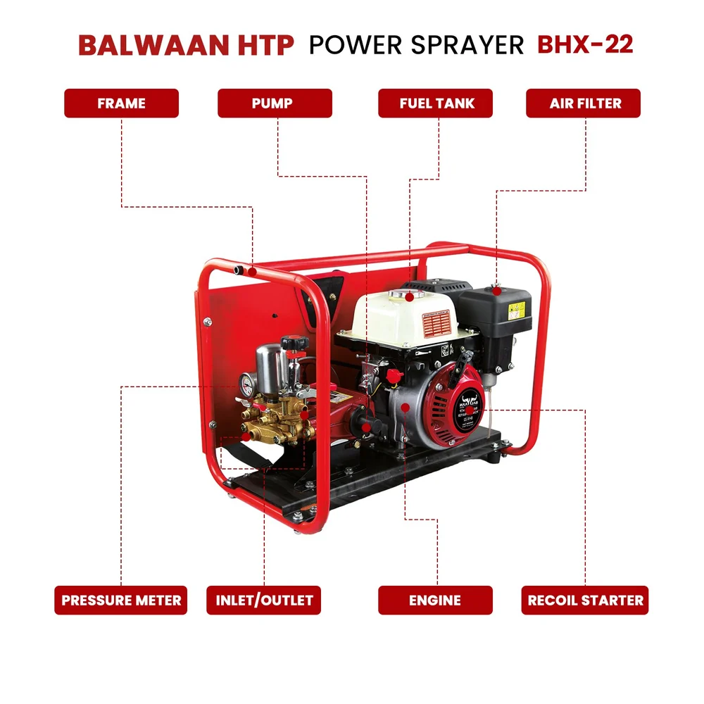 Balwaan BHE-22 HTP Pump with Engine (BX-212) 212cc 4-Stroke Petrol, Heavy-Duty High Pressure Sprayer Unit, Durable Build, Tool Kit Included (Gun & Hose Pipe Not Included), 6-Month Warranty MTAK-EN-PO-5396