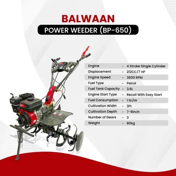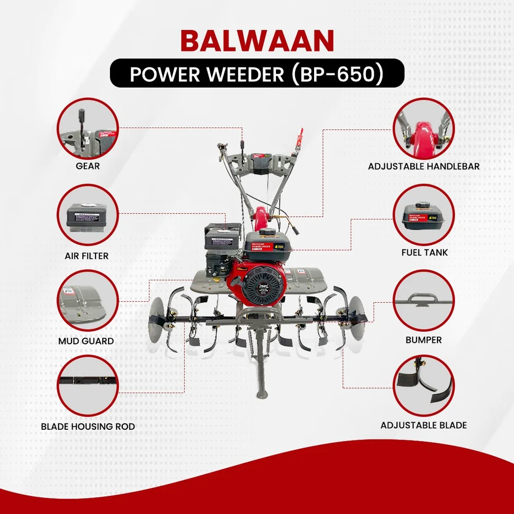 Balwaan Black Bull BP-850E Power Weeder 5.5HP Diesel 4-Stroke | E-Start, Shocker, Dual Clutch 2F+1R | 32 Blade Set with Disc | 12 Month Warranty | SKU: MTAK-EN-PO-6007