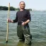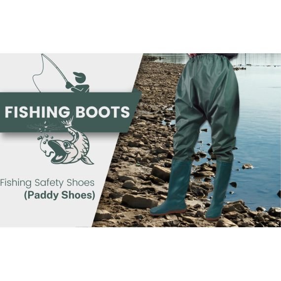 High-quality waterproof fishing safety shoes for men made with durable leather. Designed with anti-slip rubber sole and ankle support, perfect for fishing, trekking, and outdoor work in wet conditions.