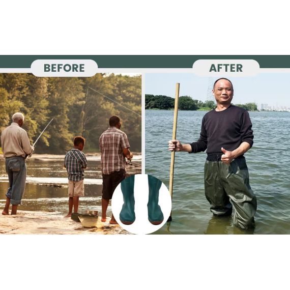 The waterproof construction keeps your feet dry throughout the day, making them ideal for activities such as fishing, trekking, and outdoor work. The anti-slip rubber sole provides excellent grip on slippery surfaces like wet rocks and muddy paths, reducing the risk of slipping and improving stability.