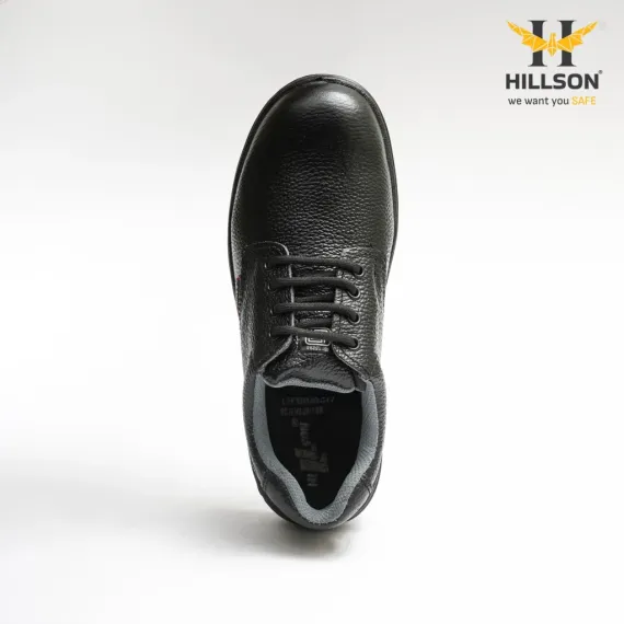 Base is a derby model, a low ankle safety shoe for Hillson. This product is ISI and CE-approved and meets all the basic standards for being an effective safety shoe. The upper of the shoe is 100 % real leather made in Shelltac print, and the sole is made up of PU. All the Hillson shoes are antistatic and have anti-slip properties, which reduce accidents. The steel toe cap at the front of the shoe protects from falling objects and is EN -12568: 2010 marked. The USP of the shoe is that it is a simple shoe and is the safest shoe in its category