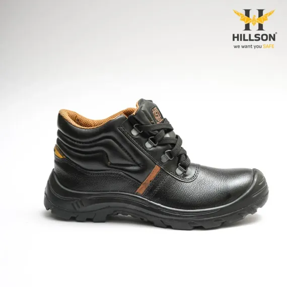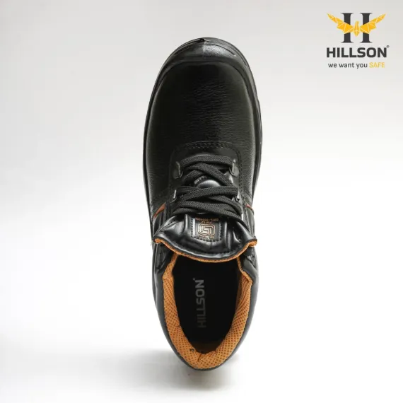 Hillson Apache High Ankle Steel Toe Safety Shoes | Genuine Leather Work Shoes | Anti-Slip PU Sole | ISI & CE Certified