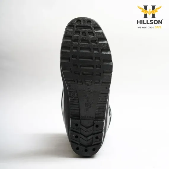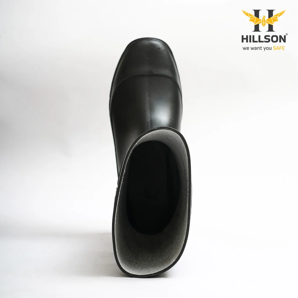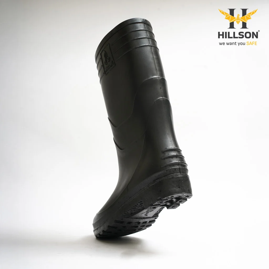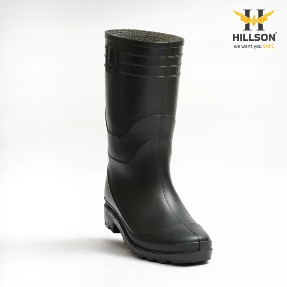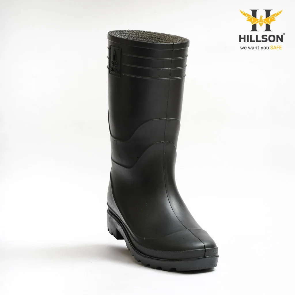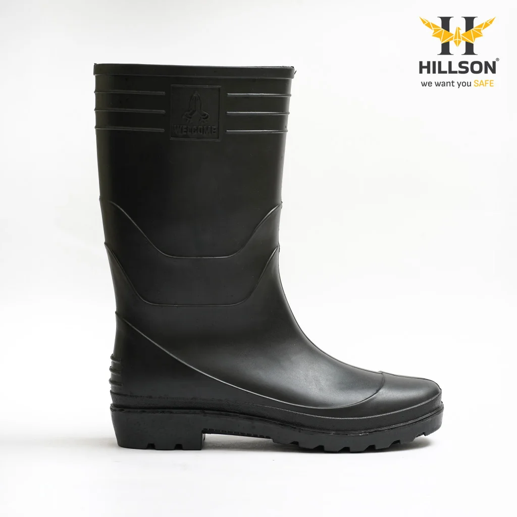 Hillson Welcome Black Industrial Rainwear Gumboots | Dual Density PVC Waterproof Work Boots Low Abrasion Sole